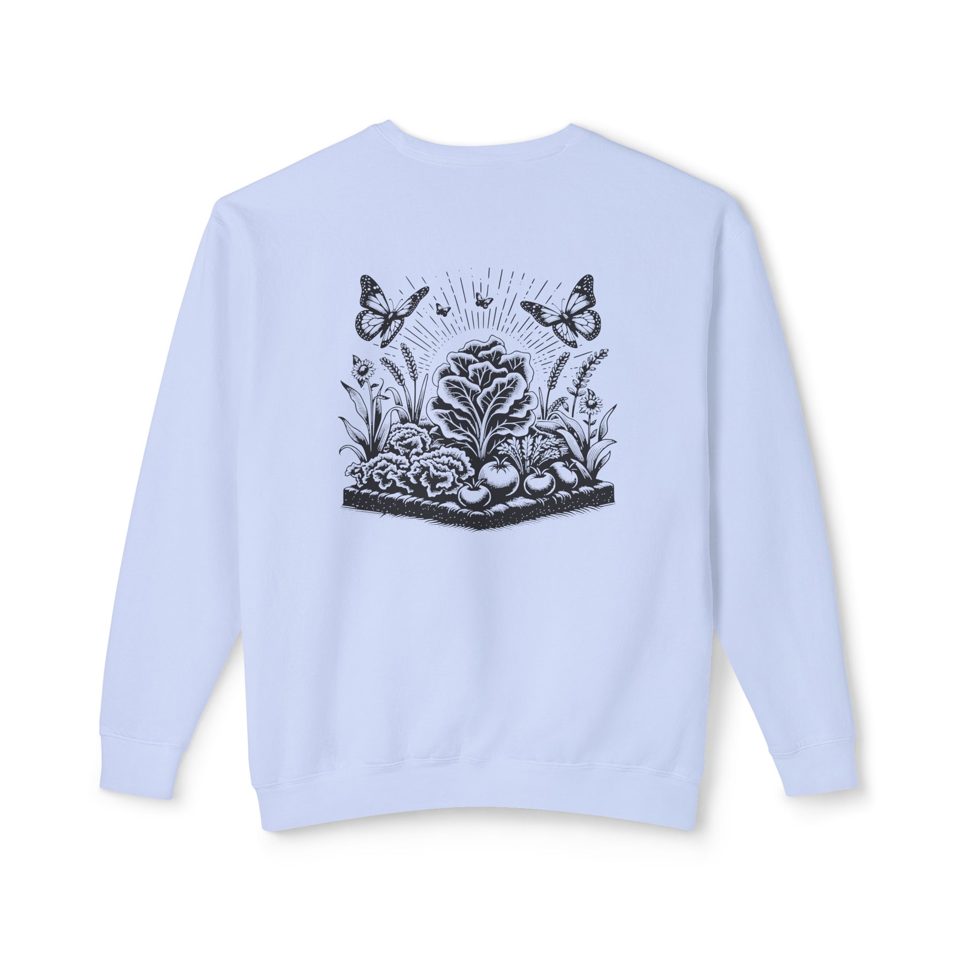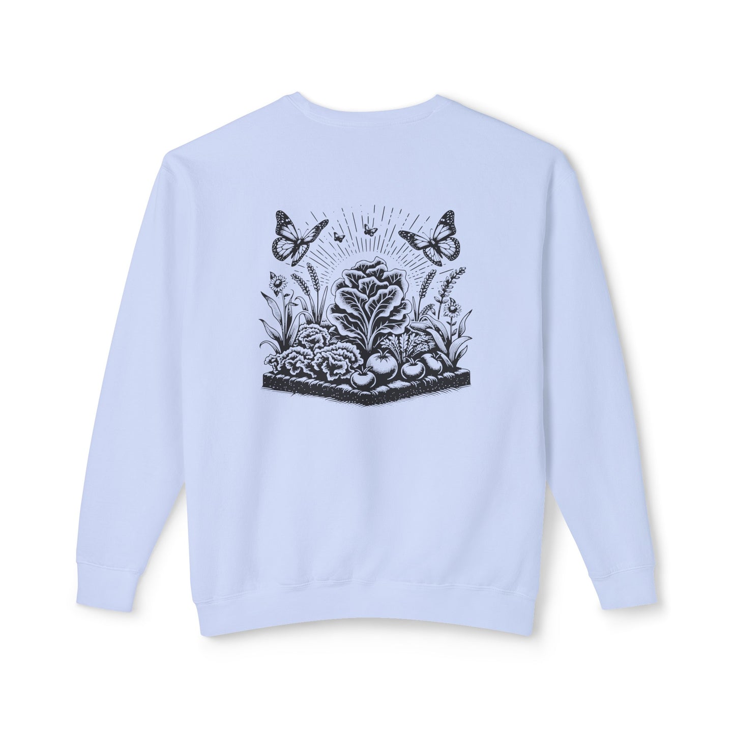 Searching for a sweatshirt that speaks to your green thumb passion? Look no further than our "To Plant A Garden Is To Believe In Tomorrow" graphic sweatshirt. This soft sweatshirt embodies the optimism and beauty of gardening with the inspirational quote on the front and a garden graphic image as a back design. It is certain to resonate with gardening and plant enthusiasts and those who believe power of nature fuels your belief in a brighter future. Printed on a Comfort Colors Lightweight Sweatshirt that has a relaxed fit.