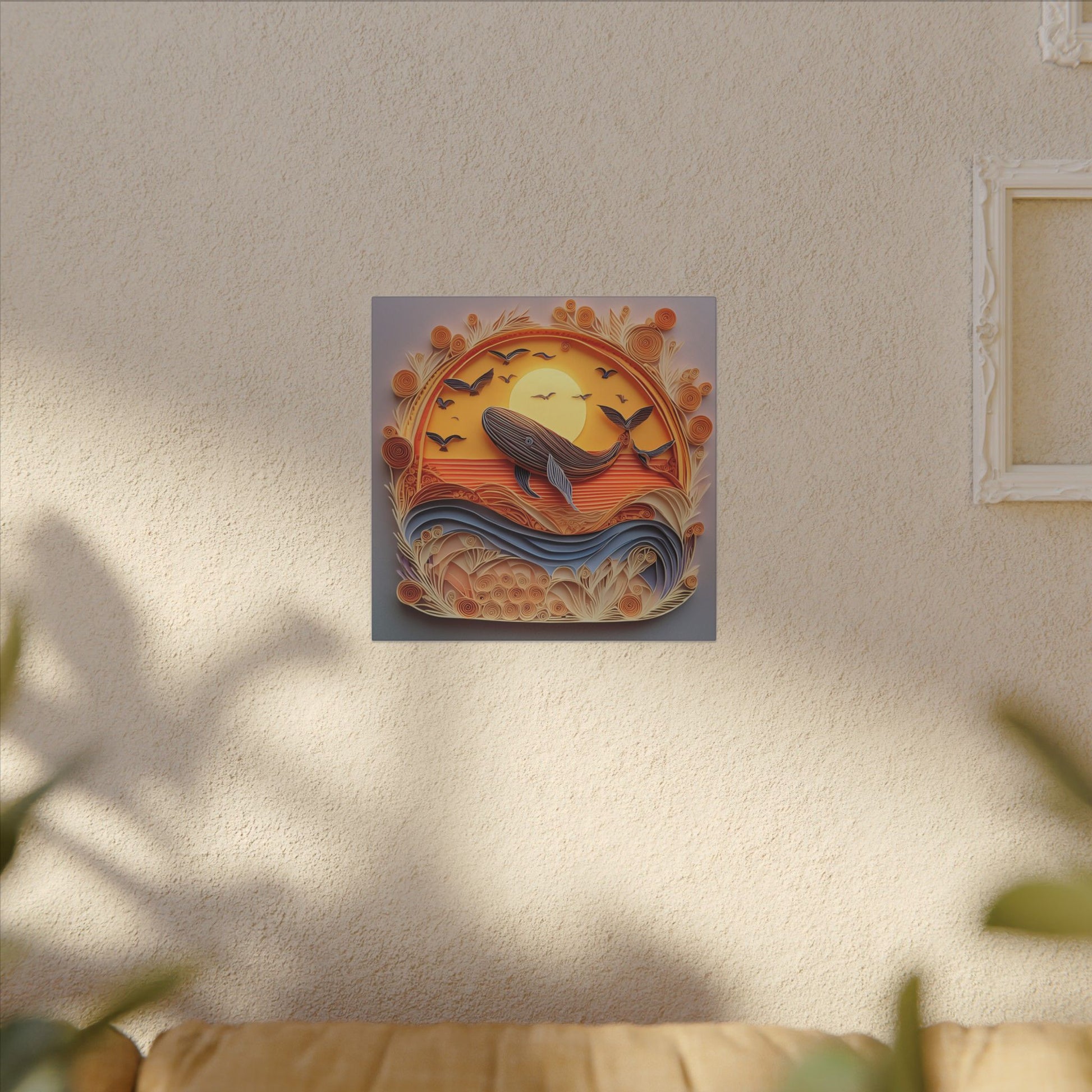 Quilling Art Print of a whale over an ocean sunrise. This inspiring marine life High Resolution image is printed on a matte canvas frame made from highly durable cotton and polyester canvas composite (9.82 oz/yd² (333 g/m²)) with a special proprietary coating for vibrant prints that last.