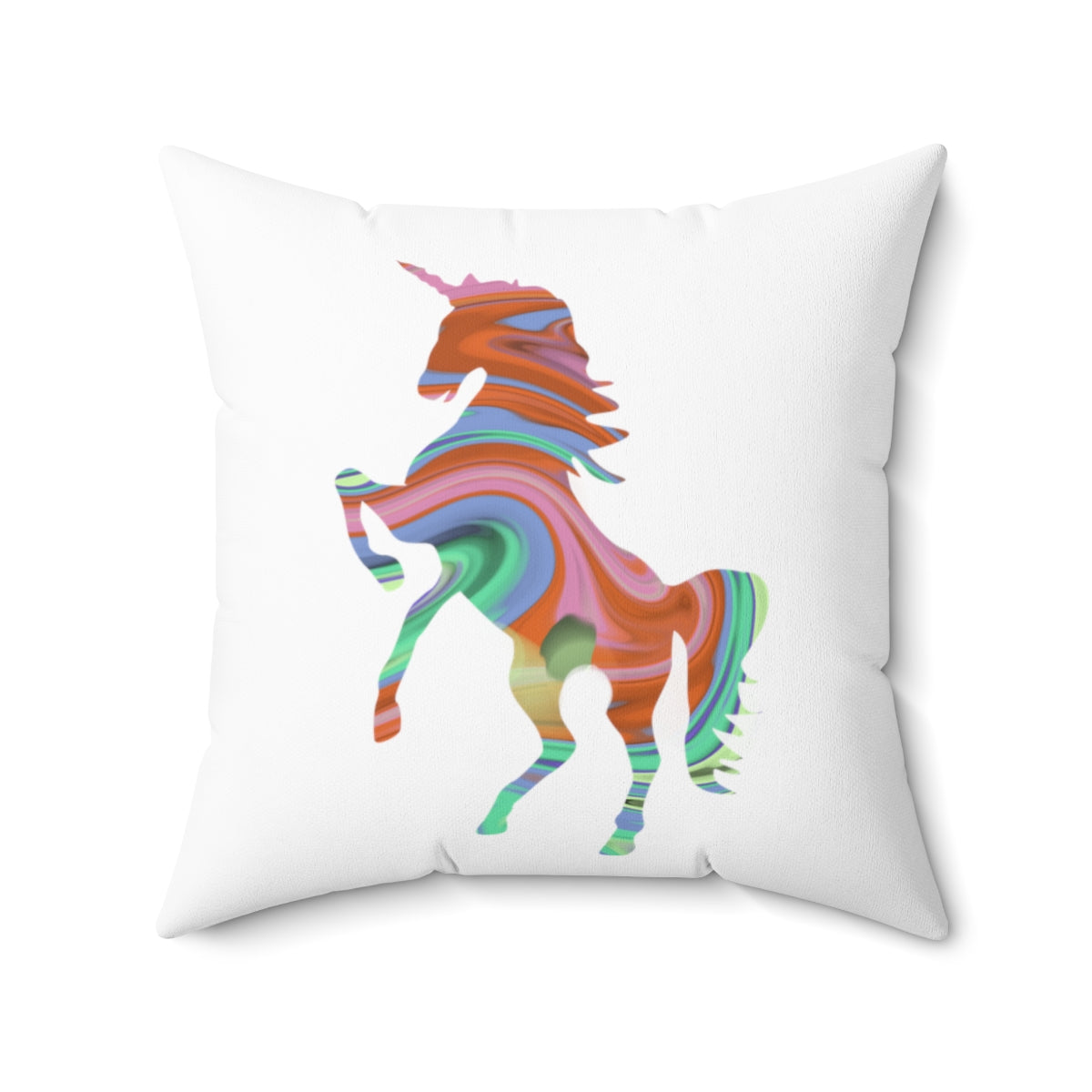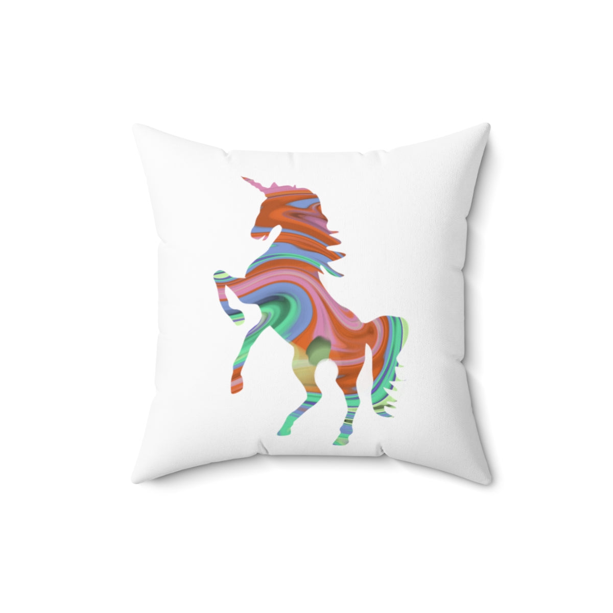Unicorn Square pillow. Room accents shouldn't be underrated. These beautiful indoor pillows with a unicorn design come in various sizes and serve as statement pieces, creating a personalized environment.